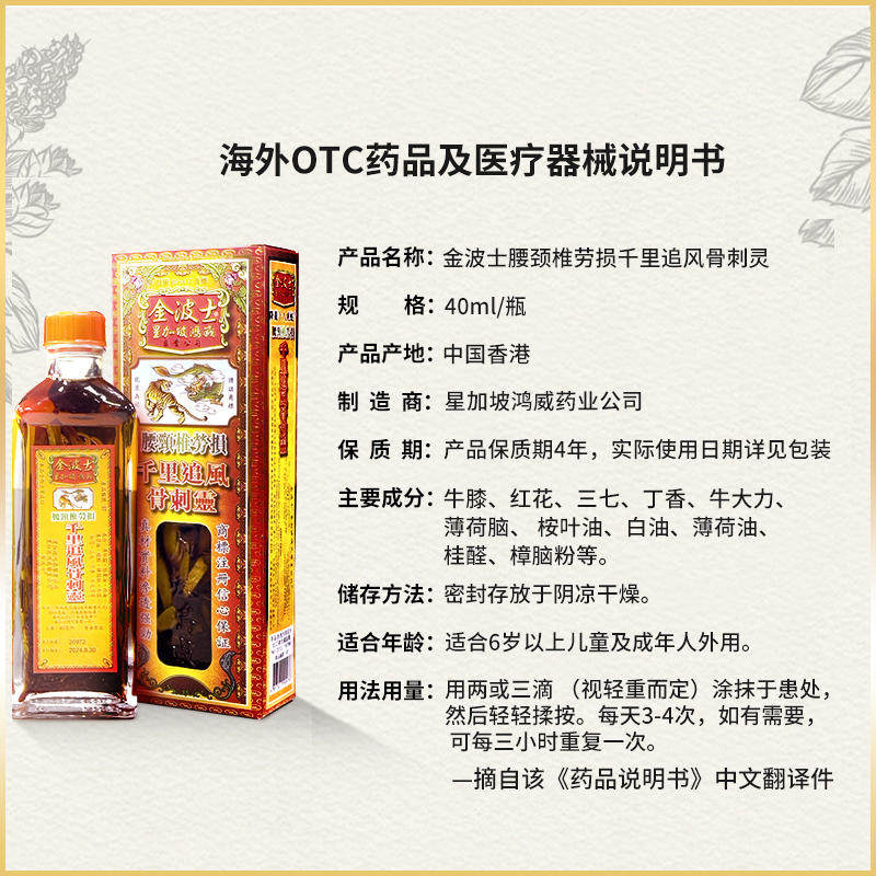 📚 金波士腰颈椎劳损千里追风骨刺灵缓解疼痛活络油