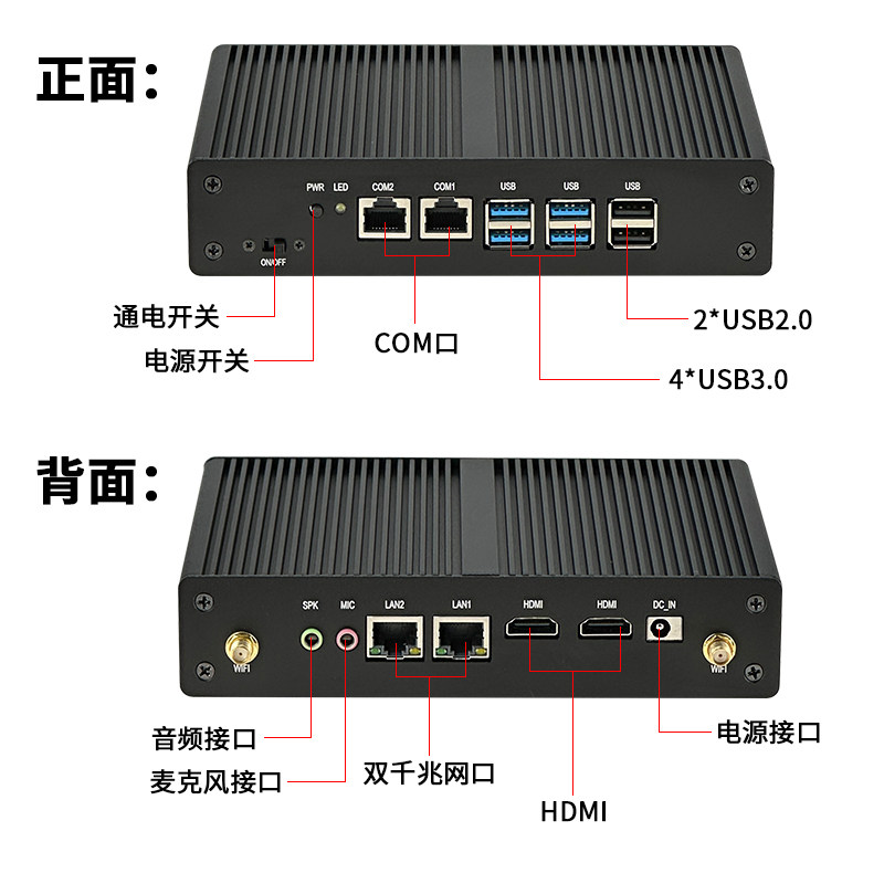 📚 工控机迷你小电脑微型服务器linux双网双串口ubuntu工业嵌入式centos便携式无风扇低功耗视觉主机奔腾N3700