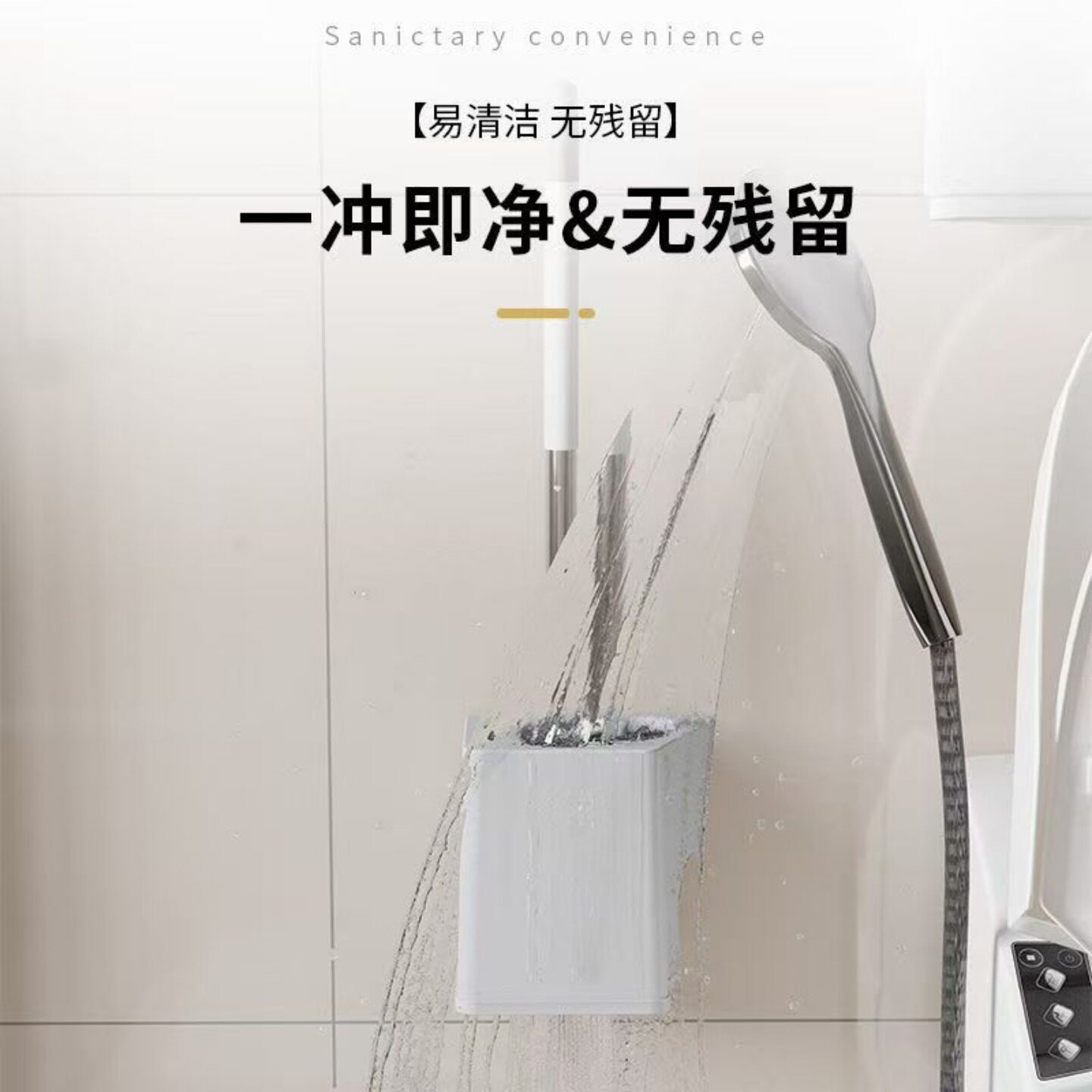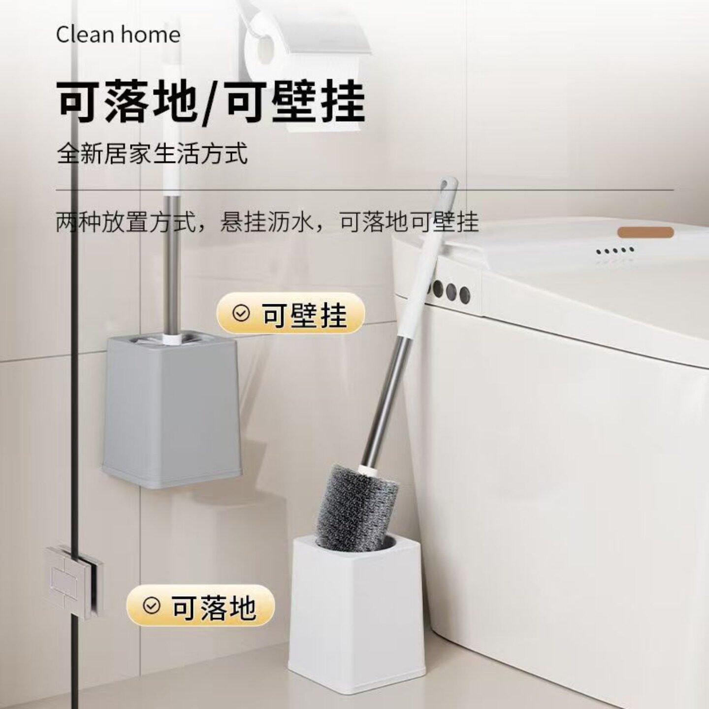📚 马桶刷套装带底座不锈钢长柄家用卫生间清洁神器可壁挂式厕所刷
