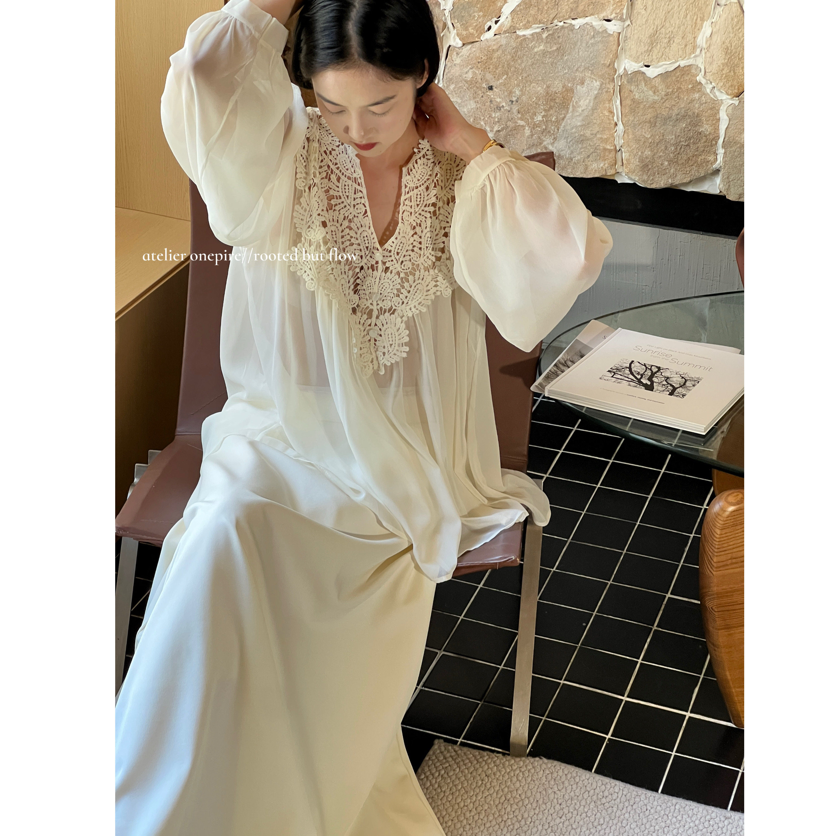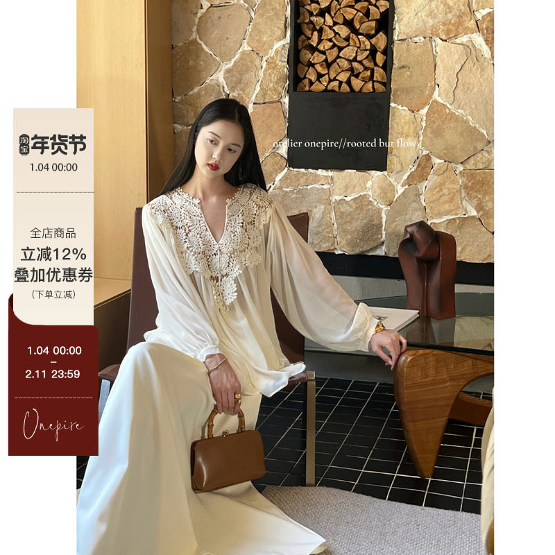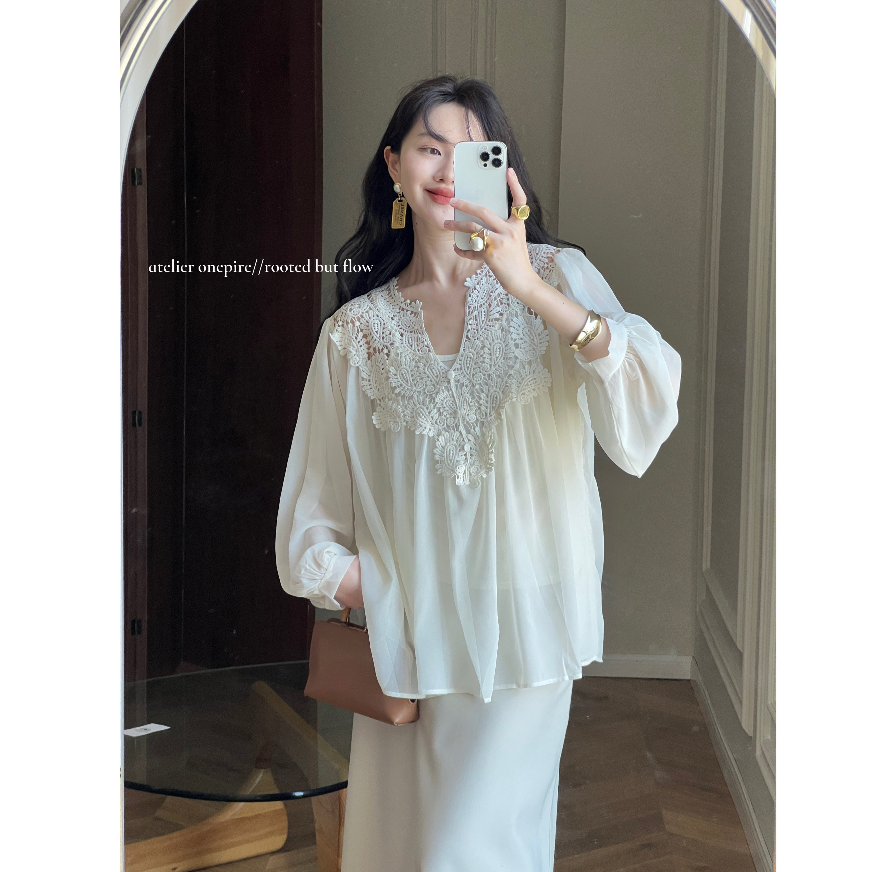 📚 【现货Atelier Onepire|《月芙蕖》蕾丝钩花雪纺拼接显瘦百搭上衣