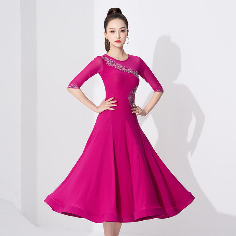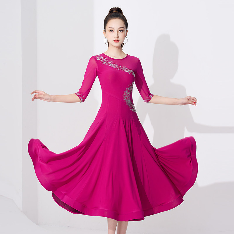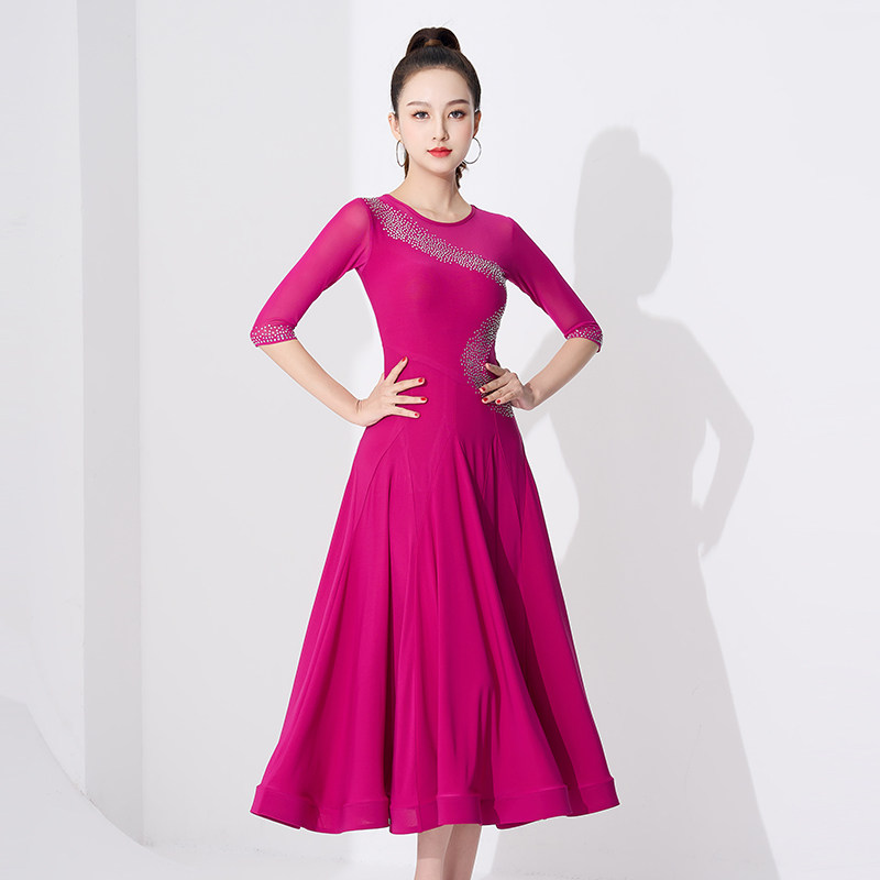 📚 摩登舞裙新款2025专业表演出比赛服国标华尔兹交谊舞大摆连衣裙际