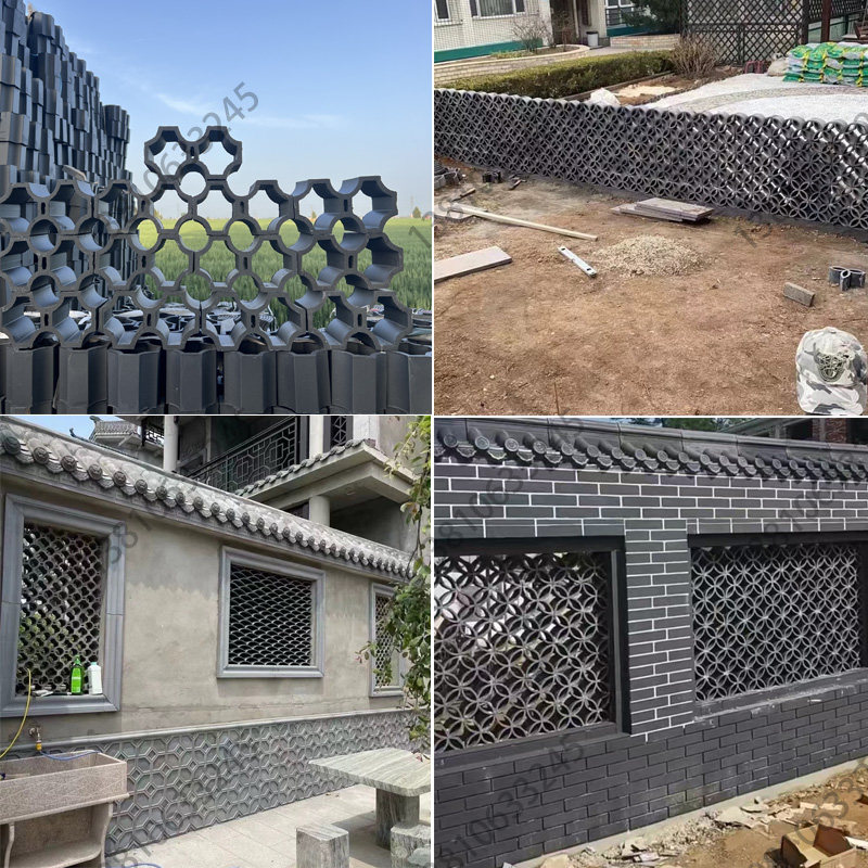 📚 古建镂空窗花瓦片装饰花园隔断庭院园林围墙四角铜钱小青瓦拼花砖