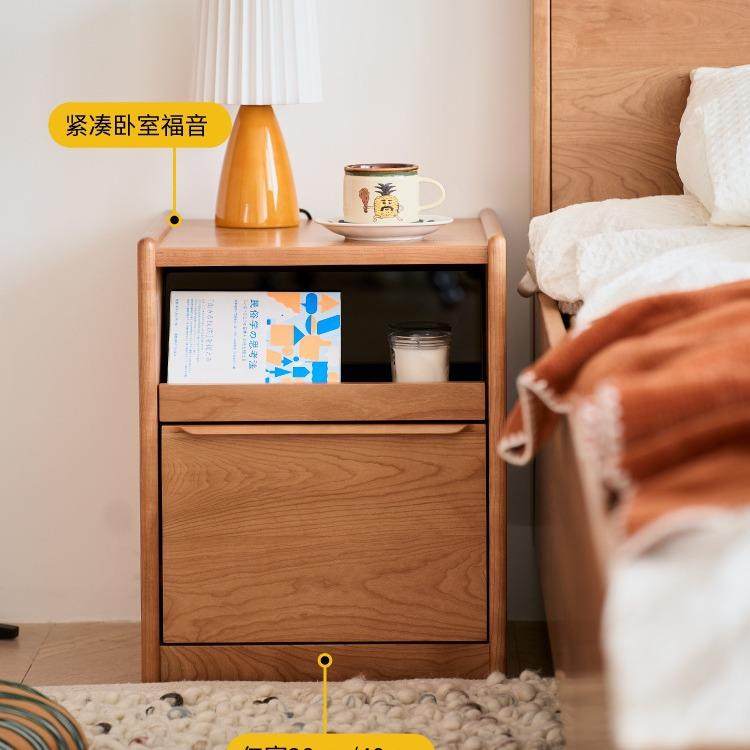 📚 二黑木作里安床头柜樱桃木实木床边柜卧室家用北欧小户型储物窄