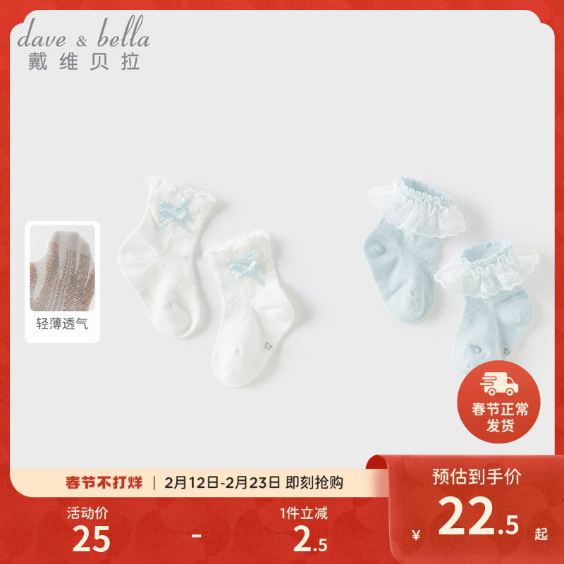 📚 戴维贝拉儿童短袜2026夏季薄款女童小童袜子宝宝透气花边袜公主袜
