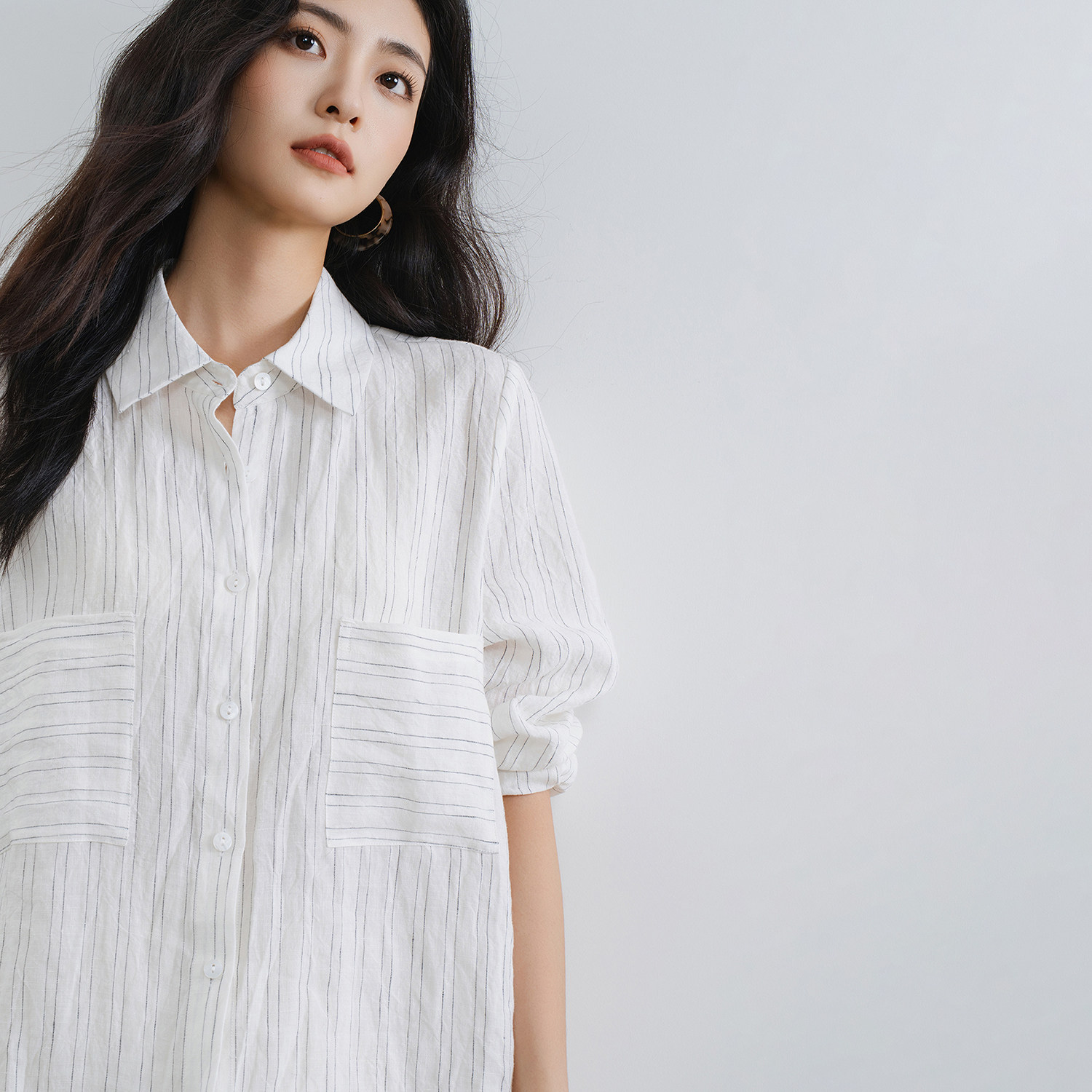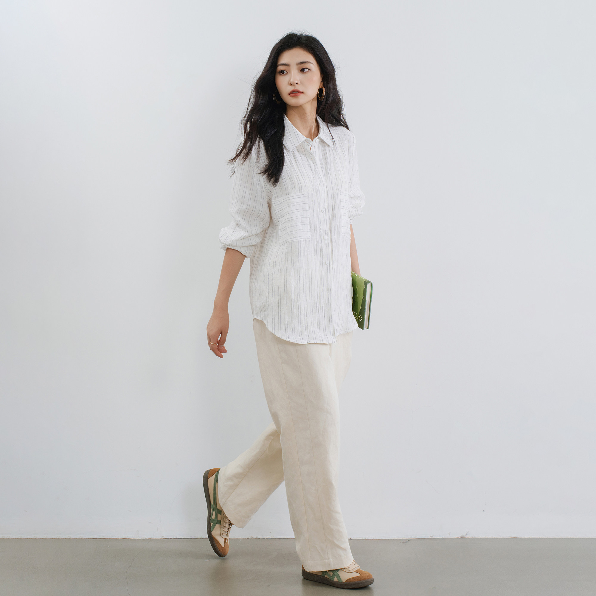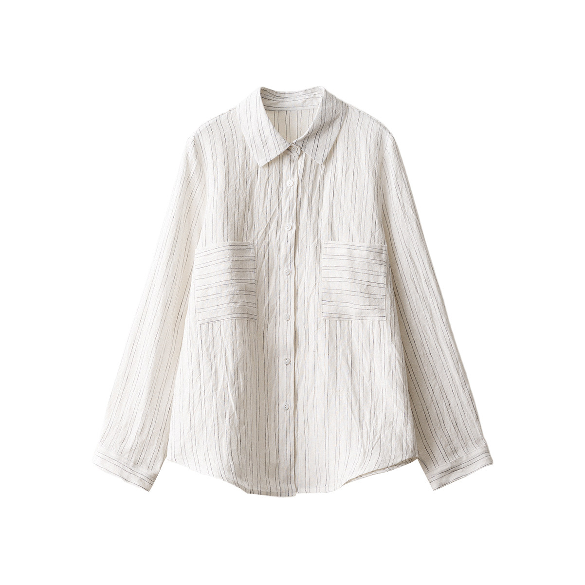 📚 梭家|豁然开朗|简约通勤白底黑条色织亚麻长袖衬衫秋季女上衣