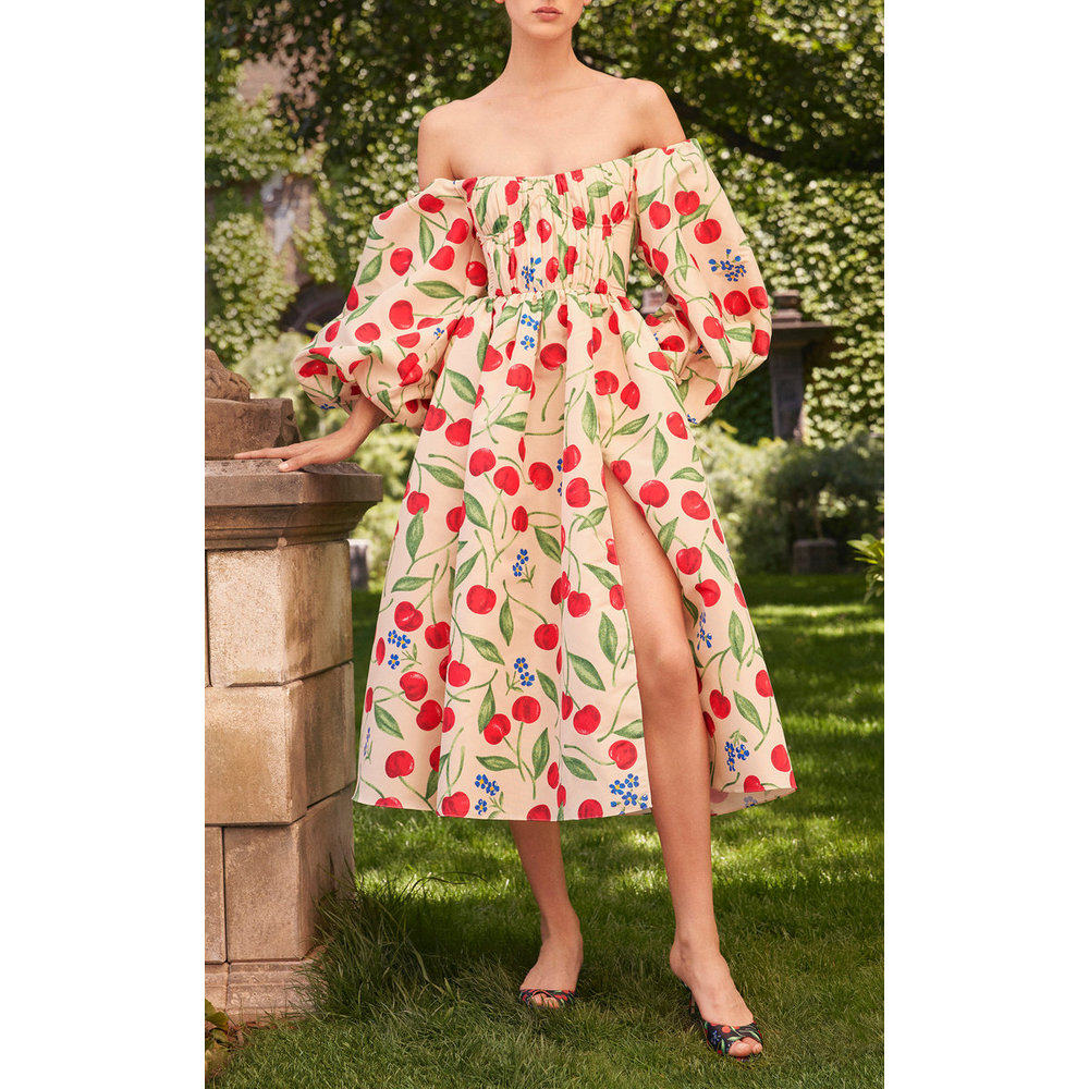 📚 1h可退 香港直邮CAROLINA HERRERA 女士 膨起袖紧身胸衣中长连衣