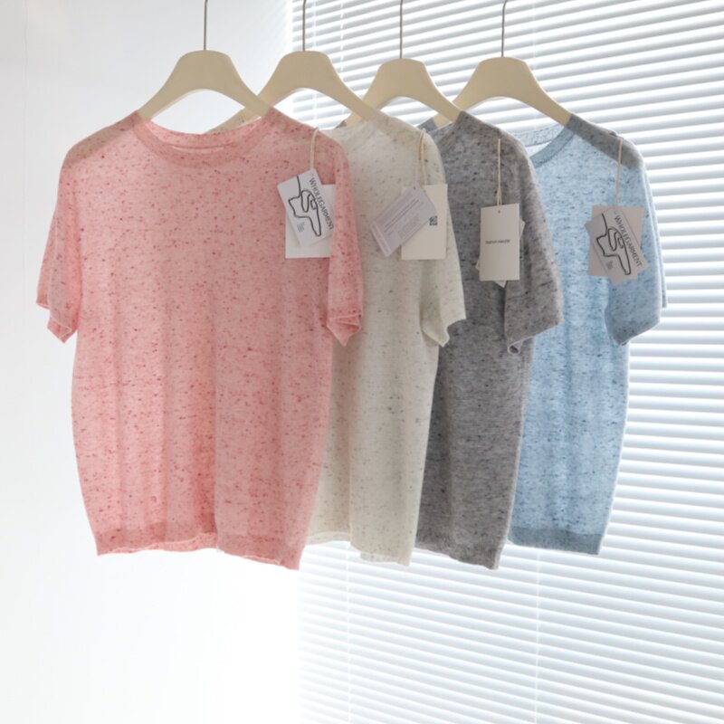 📚 斑斓色彩 糯叽叽缤纷喷点纱一线成衣无缝针织短袖羊毛混纺上衣