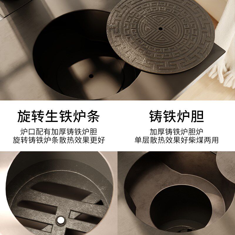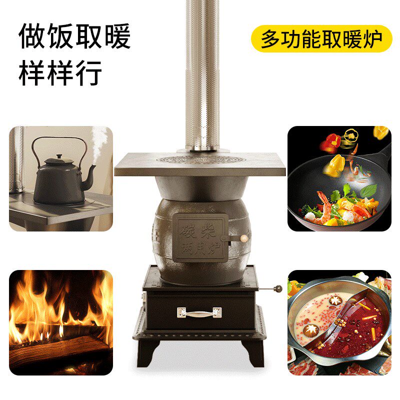 📚 柴火取暖炉冬天室内采暖炉柴煤两用农村家用铸铁烤火炉子无烟煤炉