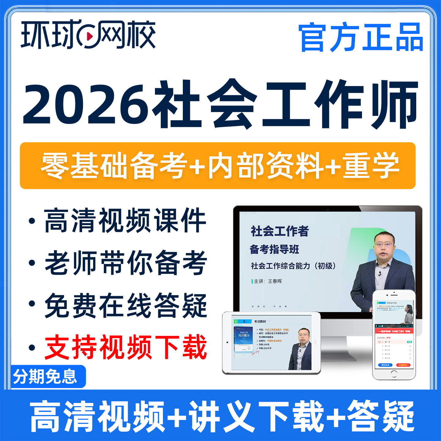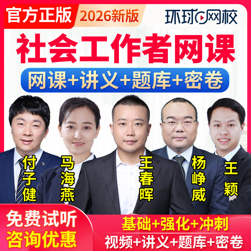 📚 环球网校2026社会工作者中级网课初级社工师视频课件教材题库王颖