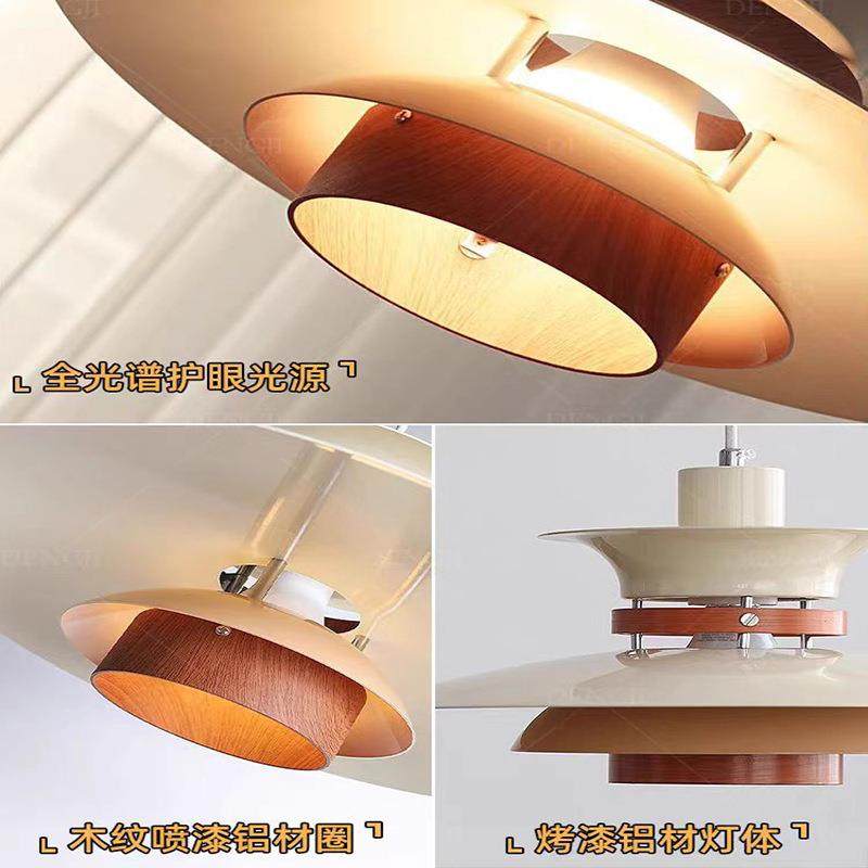 📚 丹麦飞碟PH5餐厅灯可位移吊灯胡桃木新法式设计师摇臂餐桌吧台灯