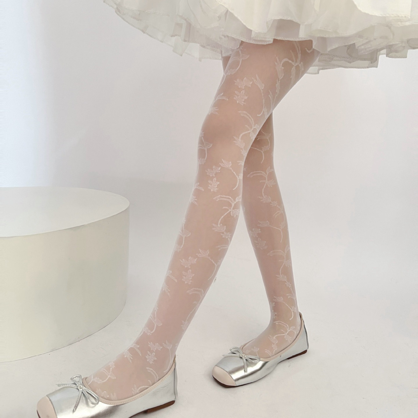 📚 新中式古风汉服搭配白色织花丝袜古韵仙气花朵藤蔓提花透明连裤袜