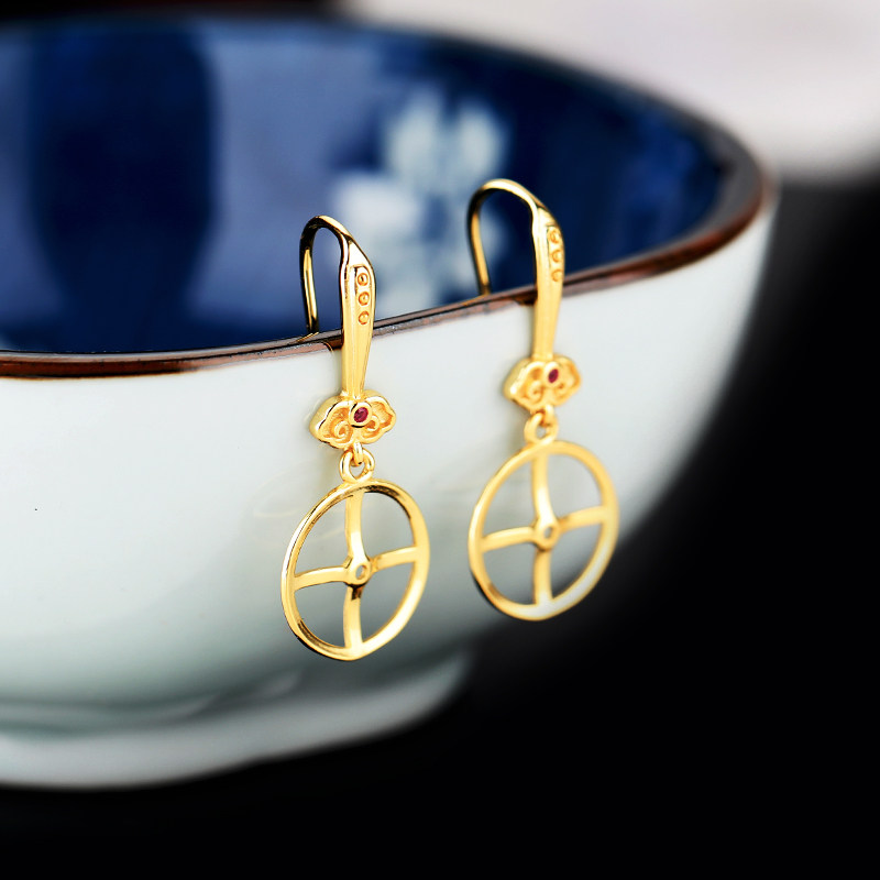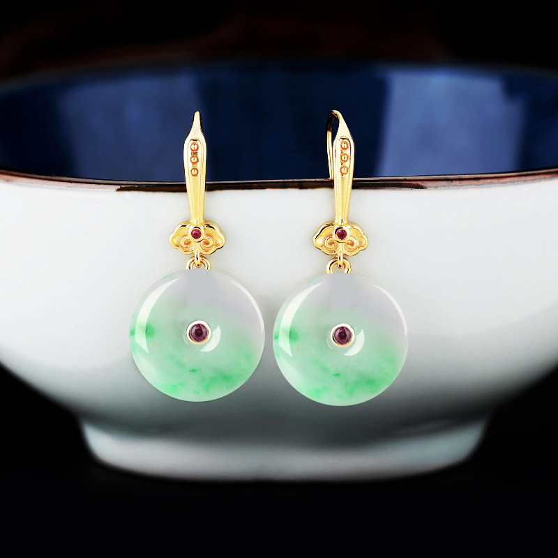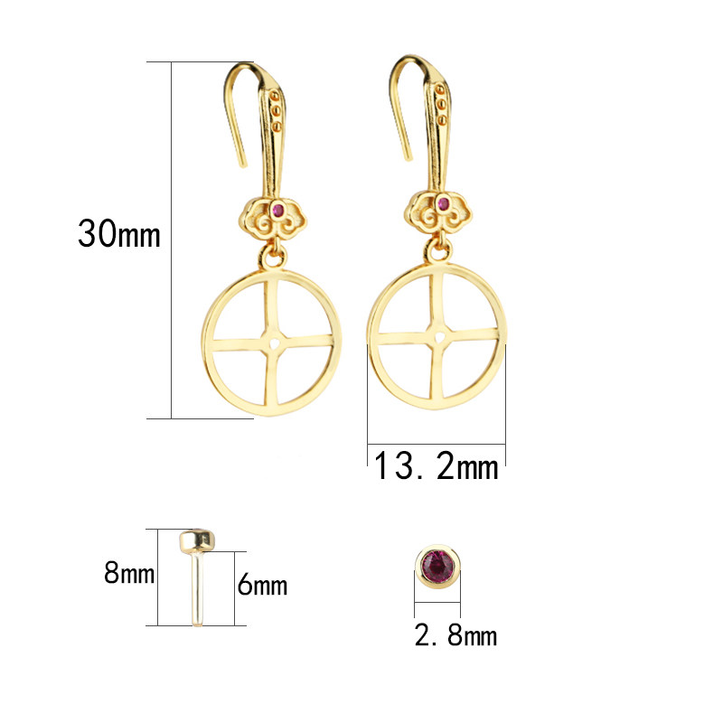 📚 S925纯银耳环空托镶嵌平安石耳饰配件翡翠和田玉石简约时尚银饰品