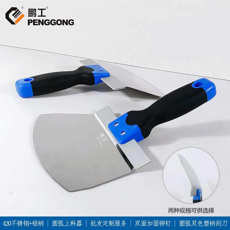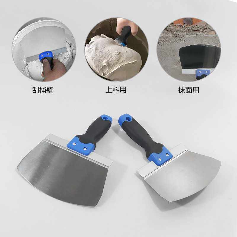 📚 弧形托灰板清洁铲刀批灰刮刀加厚不绣钢上料器加大托灰版