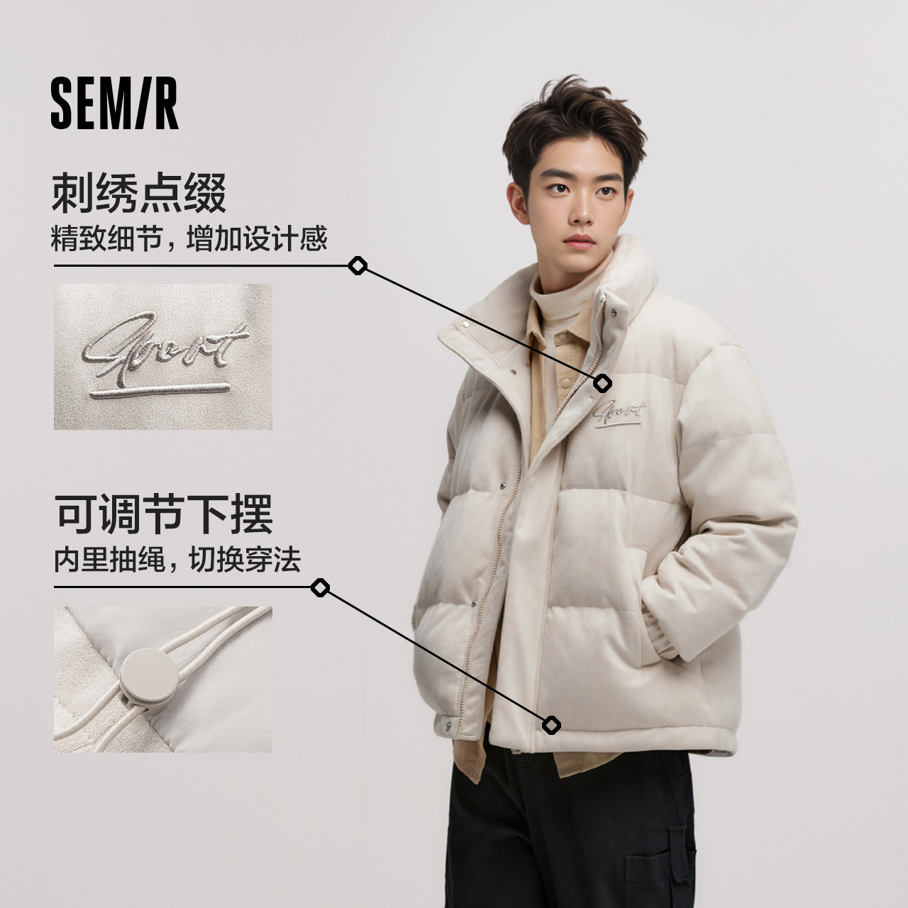 📚 森马羽绒服男质感仿麂皮廓形冬新款纯色绣花绒面外套情侣宽松百搭