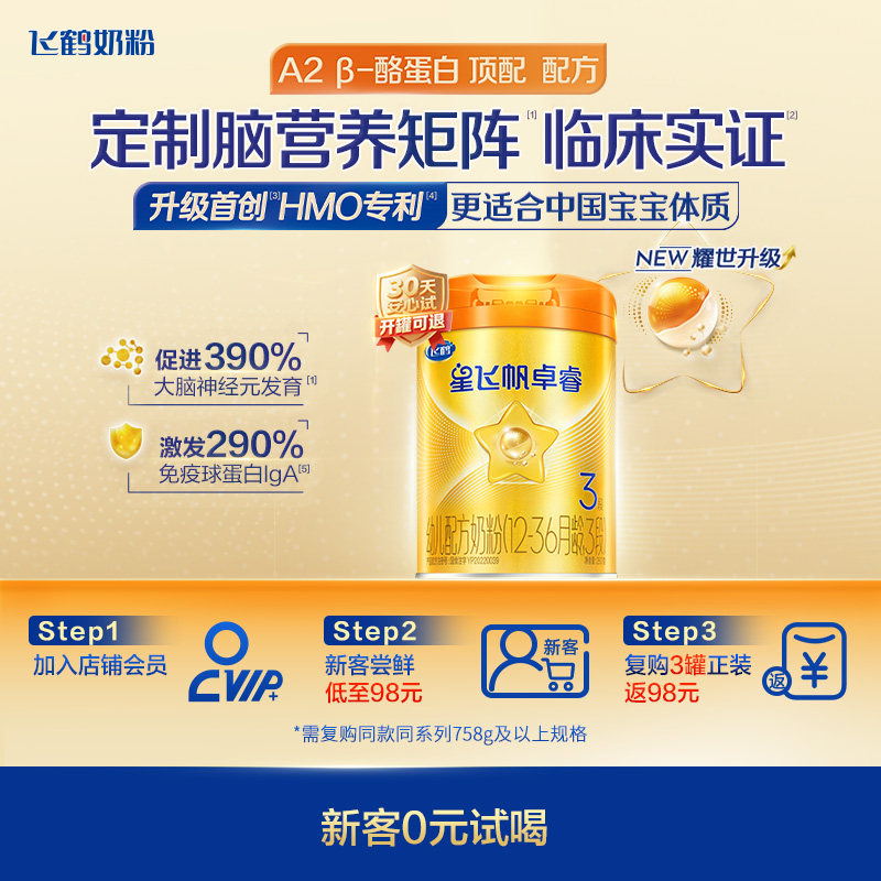 📚 飞鹤星飞帆卓睿Pro A2β-酪蛋白3段奶粉HMO婴儿试用装260g*1官方