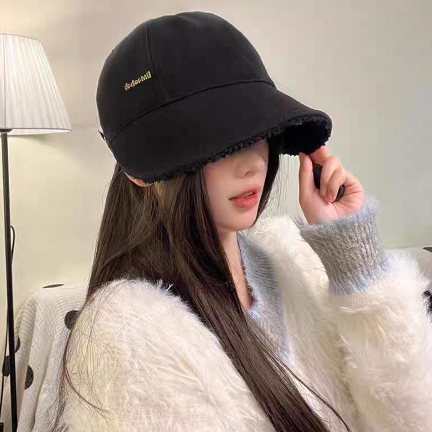 📚 双面可戴毛绒帽子女冬季保暖加厚2025新款时尚显脸小羊羔绒鸭舌帽