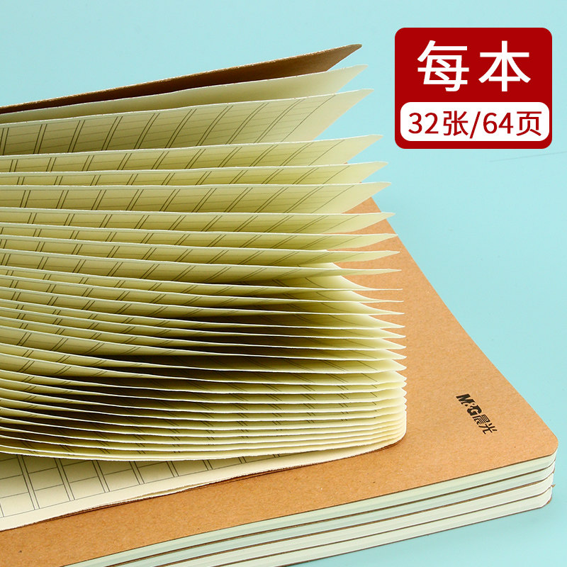 📚 晨光牛皮纸封皮作文本400格16K方格语文缝线作文本子300格小学生三四年级A5单行本初中生简约500格作文簿