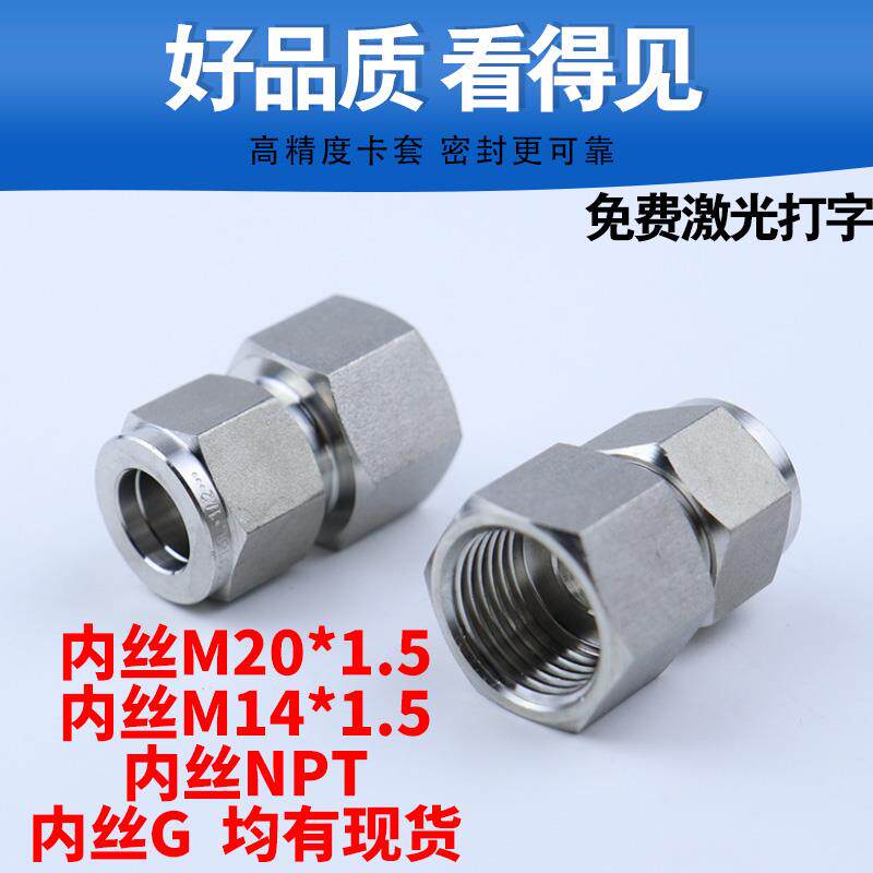 📚 不锈钢内丝双卡套接头内螺纹卡套压力表直通接头美制NPT1/43/8