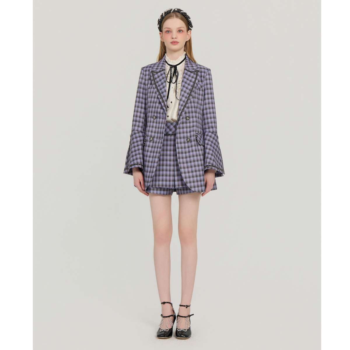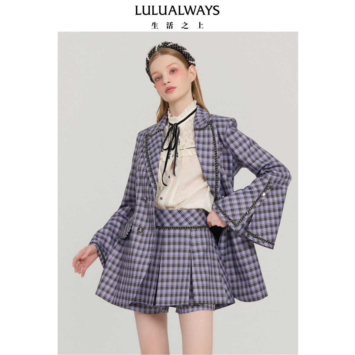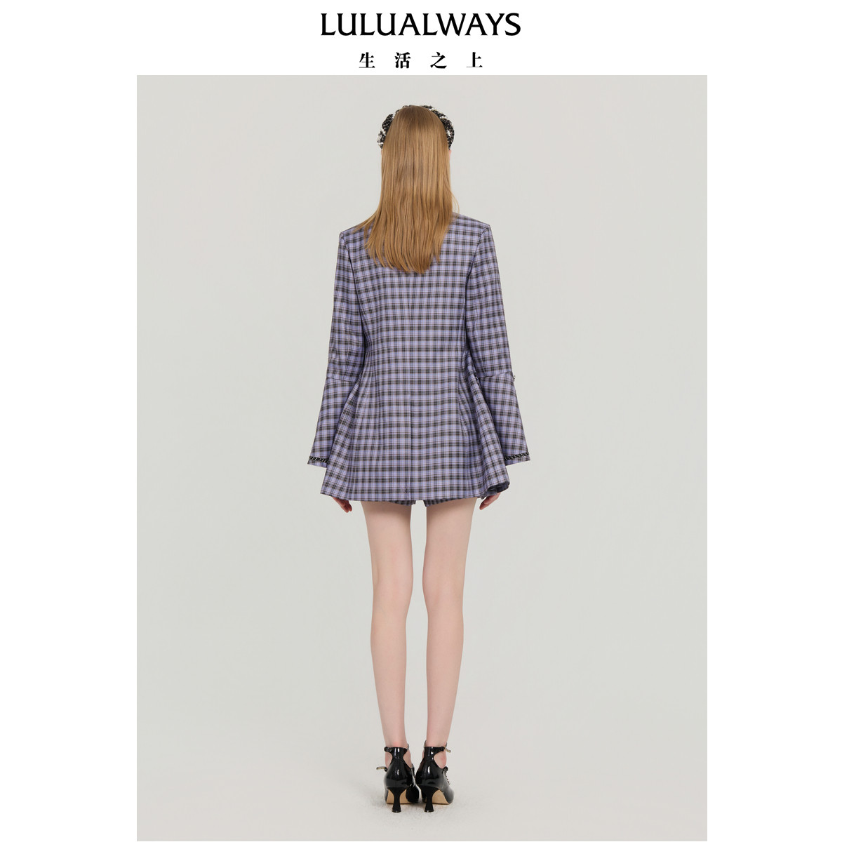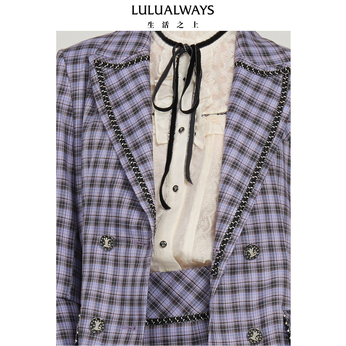 📚 LULUALWAYS我爱露露25秋季新款复古英伦格纹翻领长款设计西装外套