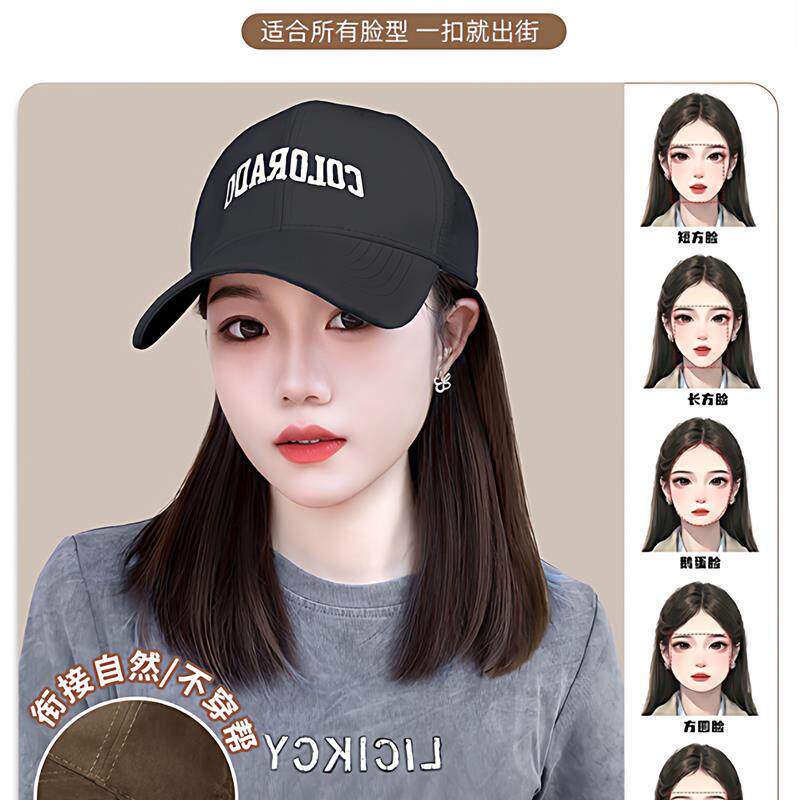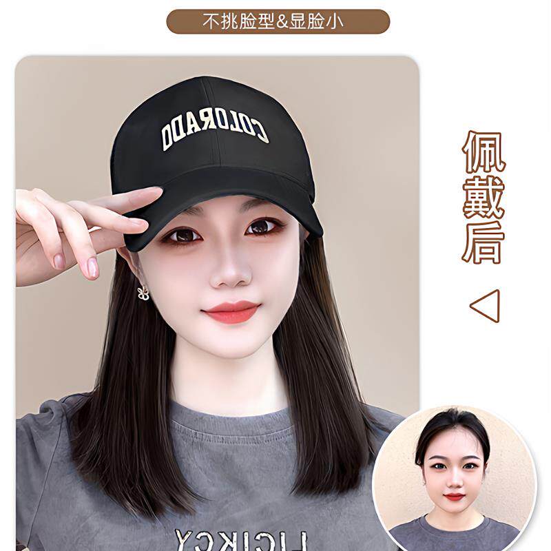 📚 假发帽子一体女2025秋天新款棒球鸭舌帽子锁骨发全头套化疗假发帽