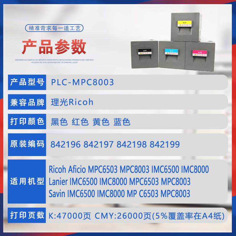 📚 适用理光mpc8003C粉盒C6503数码复合机墨粉IMC6500C8000碳粉