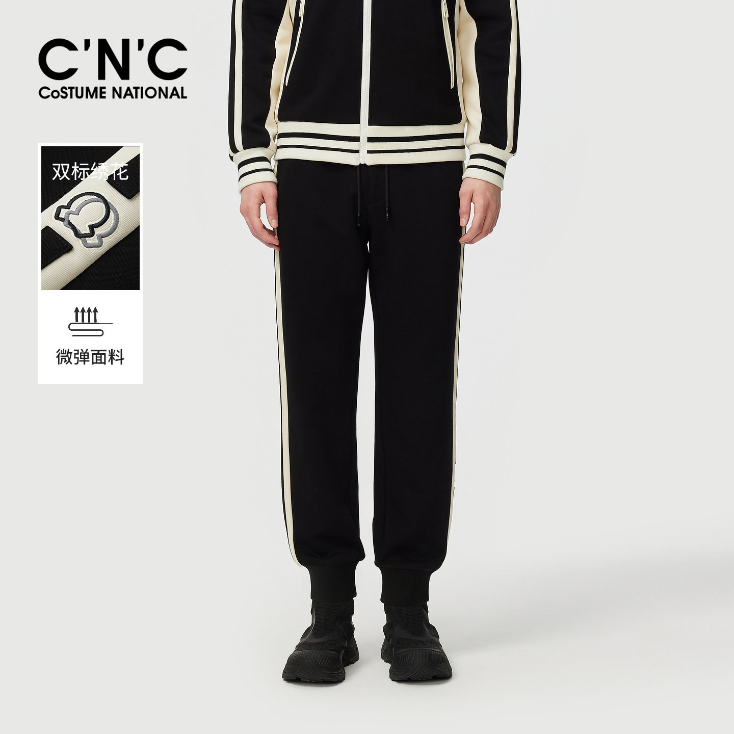 📚 CNC男装奥莱侧边条纹束脚薄绒运动裤男款秋冬宽松版青年休闲裤
