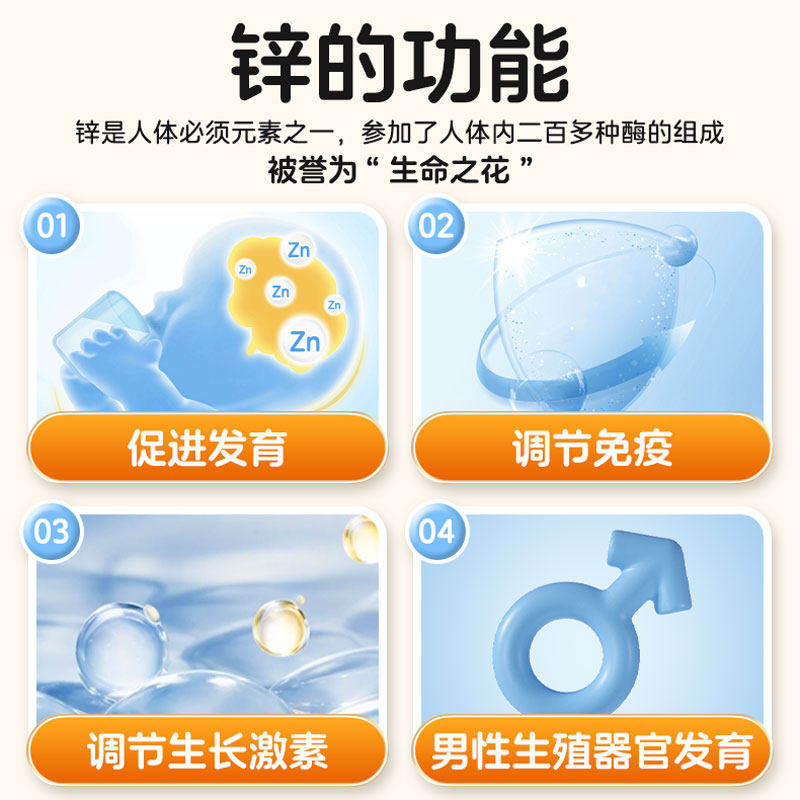 🎁关于它的功效,真的是超级强大!它含有丰富的锌元素,可以帮助人体补充所需的微量元素锌。对于成人和儿童来说,都是非常适合的补锌剂。而且,它不含钙铁等其他矿物质元素,更适合成人使用。