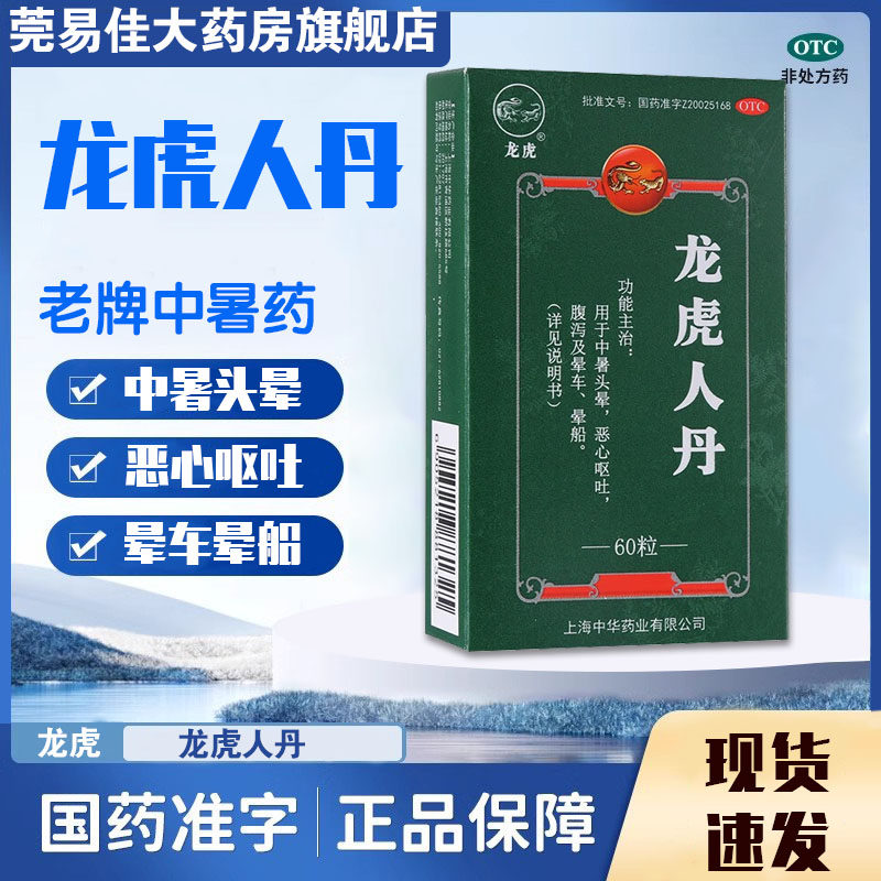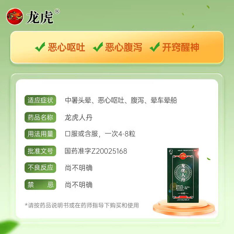 📚 龙虎人丹60粒仁丹丸防暑解暑药晕船药中暑头晕恶心呕吐腹泄祛暑