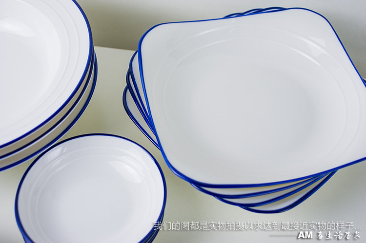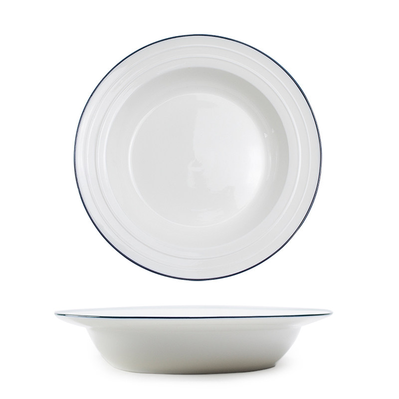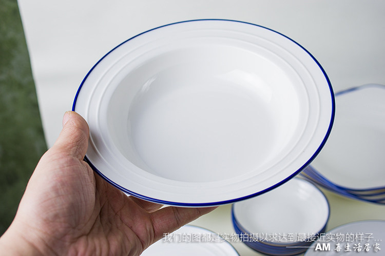 📚 北欧网红INS风蓝边餐具盘子/奶油蘑菇汤菜饭盘碟盆飞碟草帽西餐盘