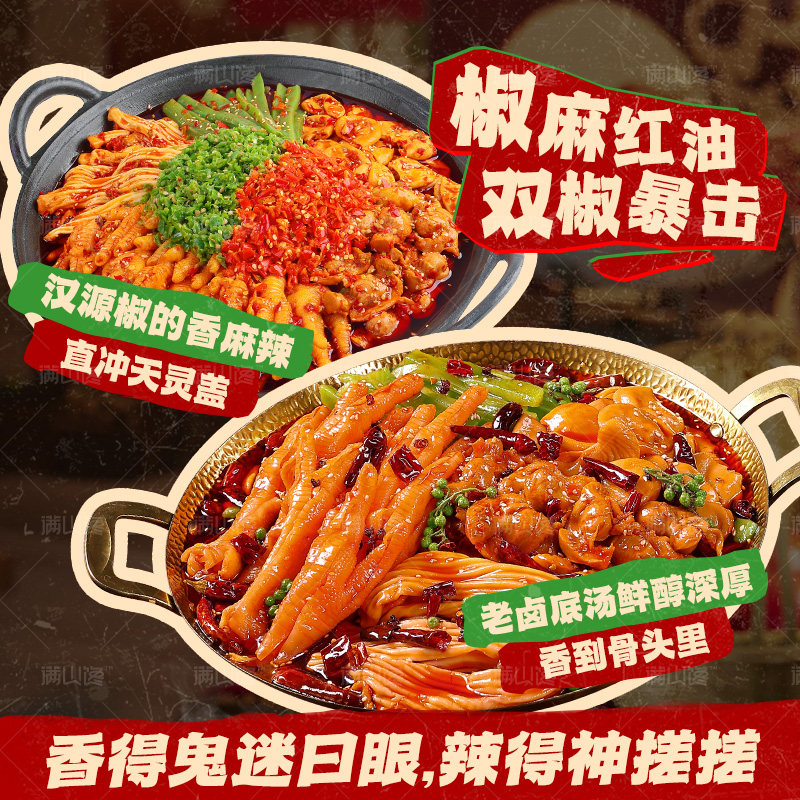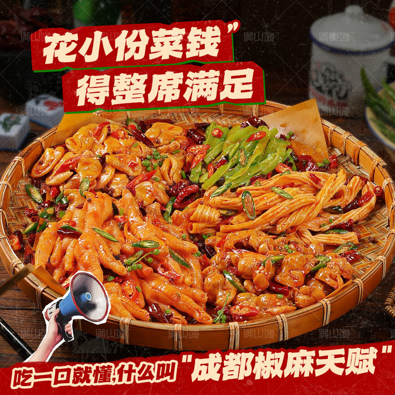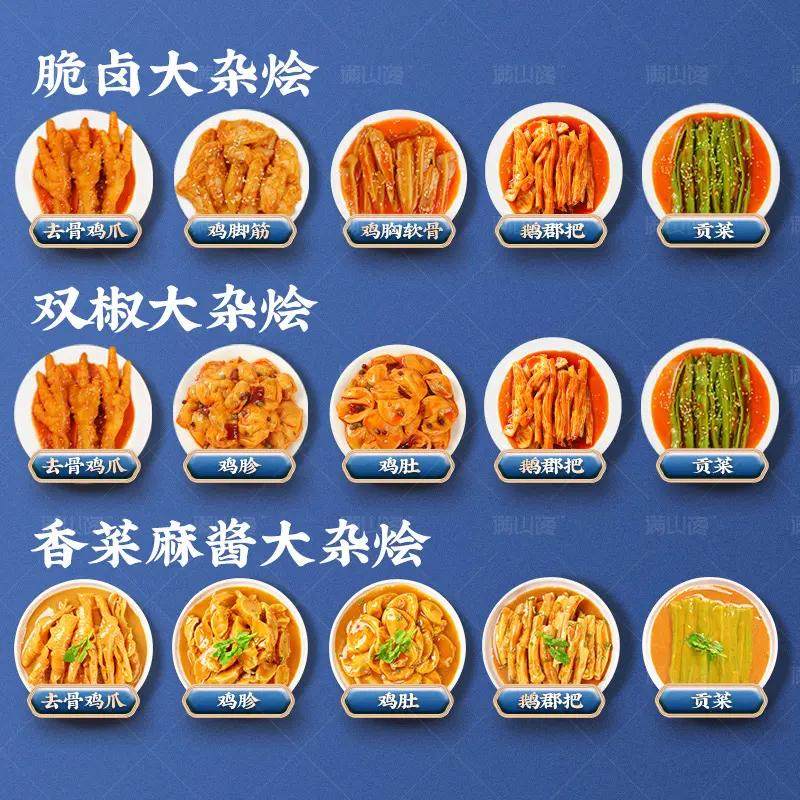 📚 满山馋椒麻大杂烩脆卤无骨鸡爪贡菜网红即食速熟食下饭菜休闲零食