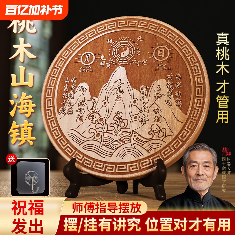 📚 真桃木山海镇化解八卦镜木雕挂件房屋室内室外凸镜山海图装饰摆件