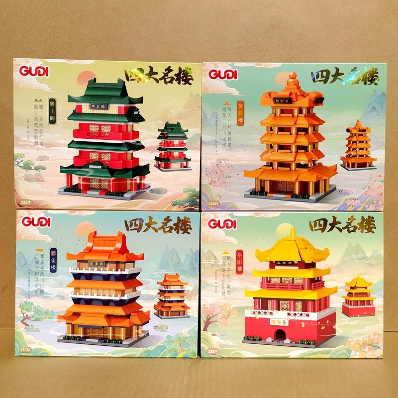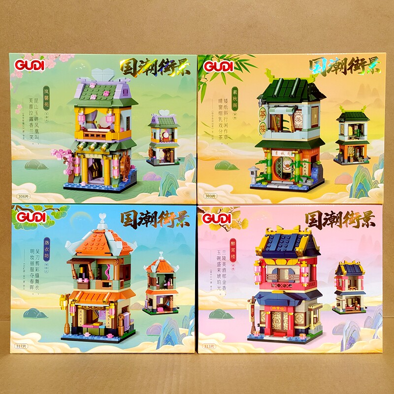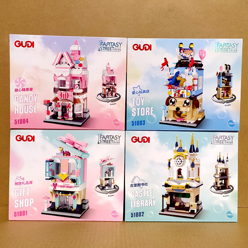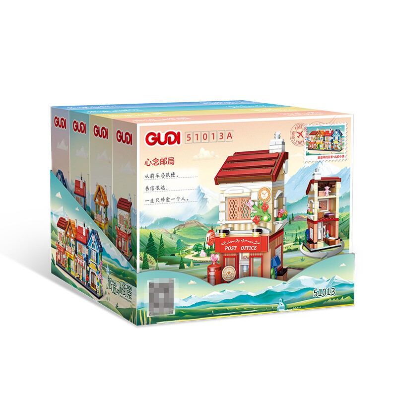 📚 古迪积木51013北欧小镇旅途中街景四大名楼迷你房子拼装女生礼物