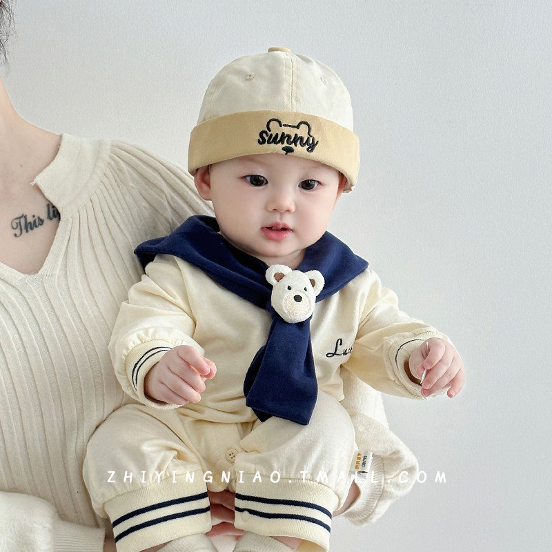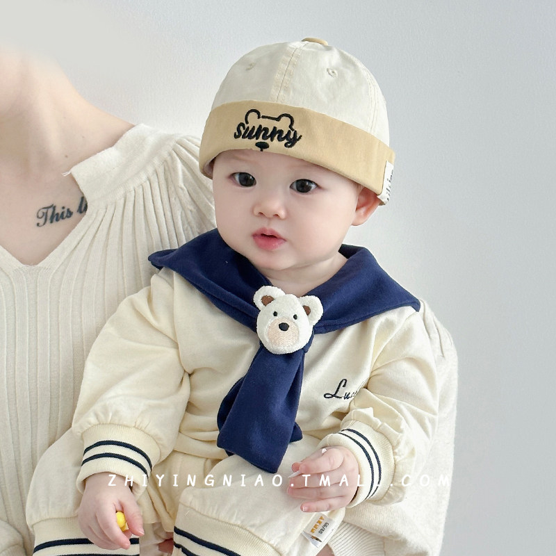 📚 婴儿帽子春秋季薄款地主帽可爱超萌雅痞宝宝海盗帽男童外出瓜皮帽