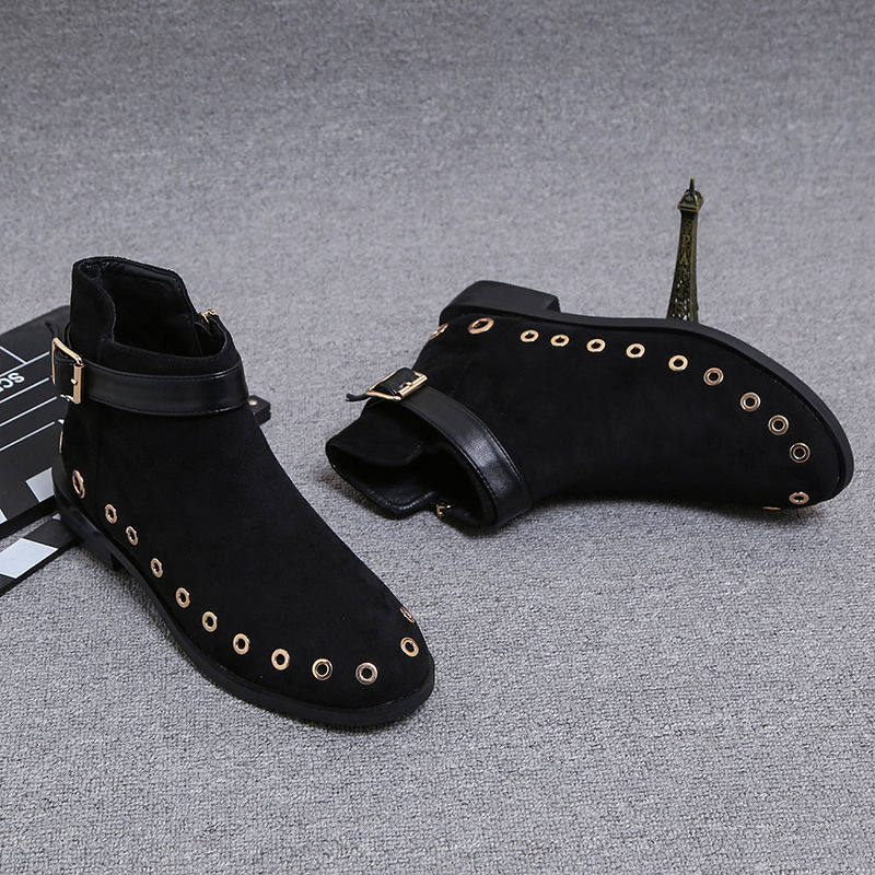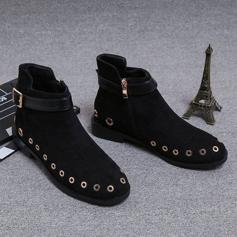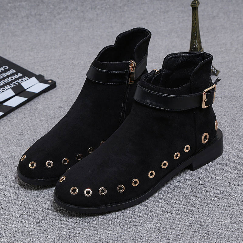 📚 欧洲站2025春秋季新款圆头马丁靴低帮短靴黑色铆钉平跟磨砂皮女靴