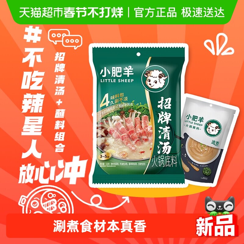 📚 小肥羊招牌清汤火锅底料+清香蘸料组合分包粉质家用鲜汤底料