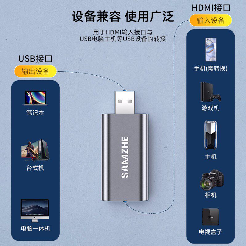 📚 山泽 CJQ-01 视频采集卡器 switch游戏直播ps4ns/xbox电脑录制盒高清HDMI转USB采集盒 usb小巧型(随身带)