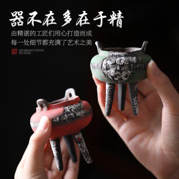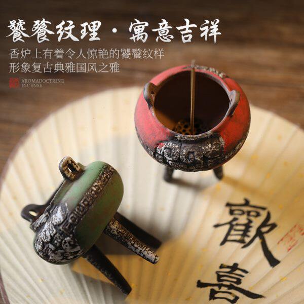 📚 复古老岩泥饕餮纹三足小鼎炉陶瓷香炉香薰炉家用室内创意礼品摆件