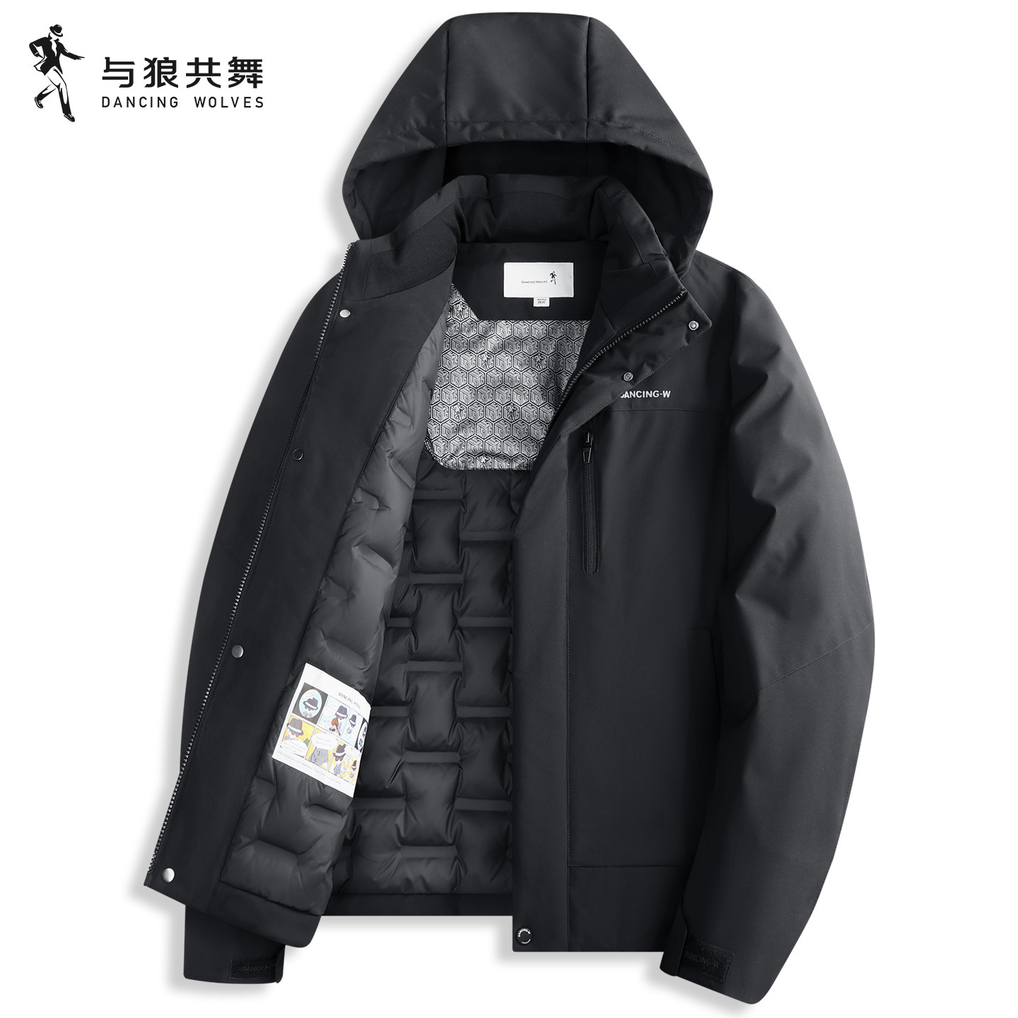 📚 与狼共舞可拆卸连帽羽绒服男士2025秋冬新款亲肤休闲时尚保暖外套
