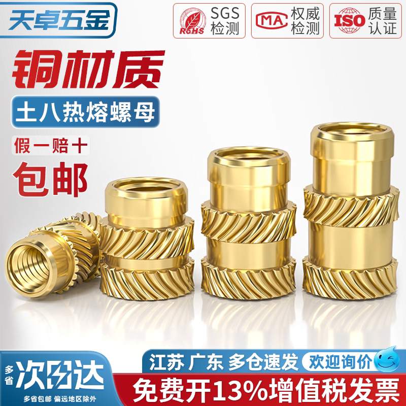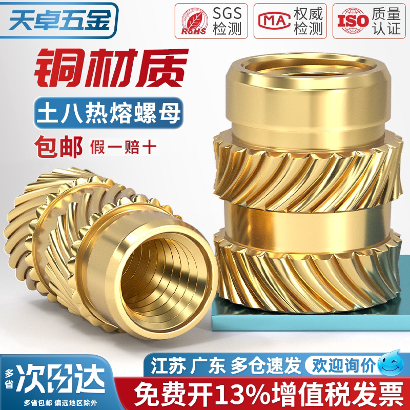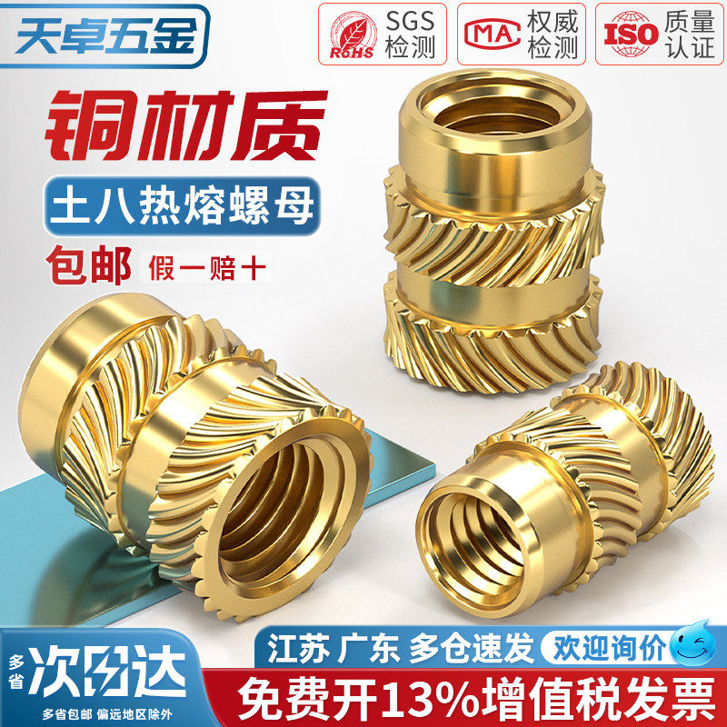 📚 土八热熔螺母注塑铜螺母镶件M1M2M3M4M5M6M8滚花铜螺帽嵌件铜花母
