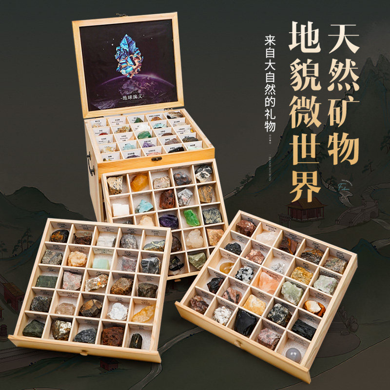 📚 新100种天然矿石标本套装水晶原石矿物摆件石头奇石送礼科普收藏