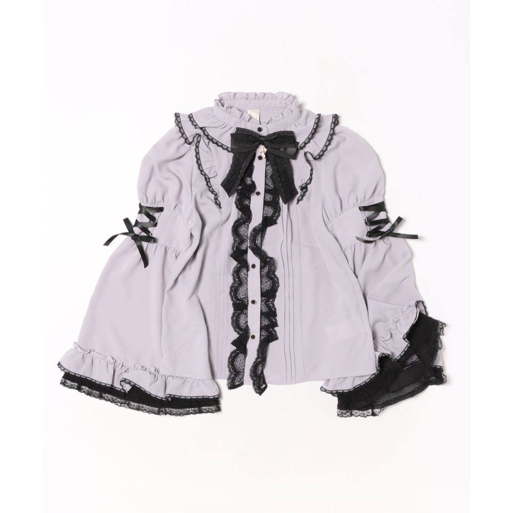 📚 1h可退 日本直邮Secret Honey 女装 蕾丝拼接 立领荷叶袖衬衫 6SS
