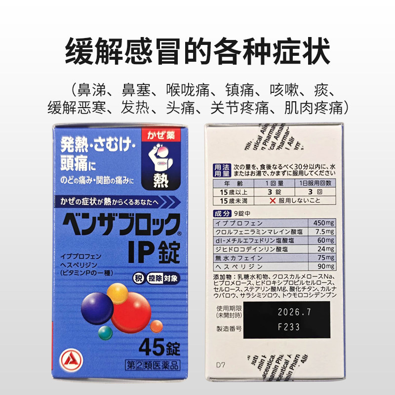 📚 日本直邮合利他命IP感冒药发热恶寒头痛肌肉痛咳嗽痰鼻塞流涕45粒