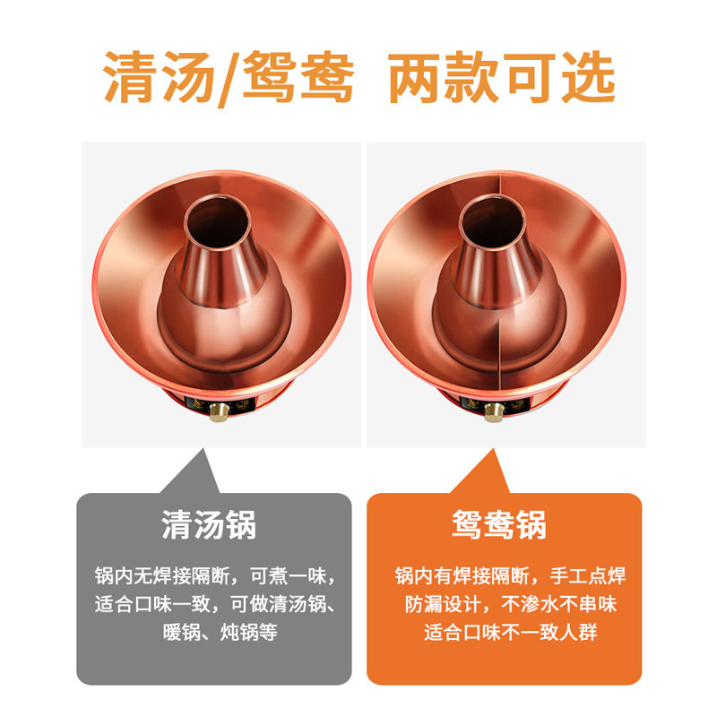 📚 家用铜火锅插电纯铜老式电碳两用木炭纯紫铜老北京清汤锅铜锅锅具