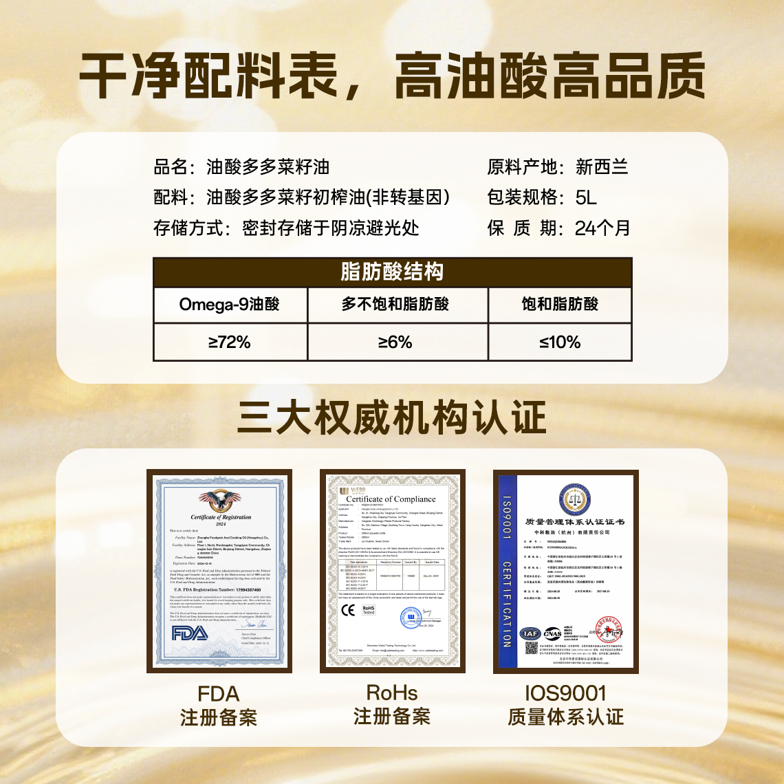 🍀今日入手的心头好,一款超级实用的厨房好物——中科粮油油酸高纯头道冷榨低芥酸菜籽油5L!🍃