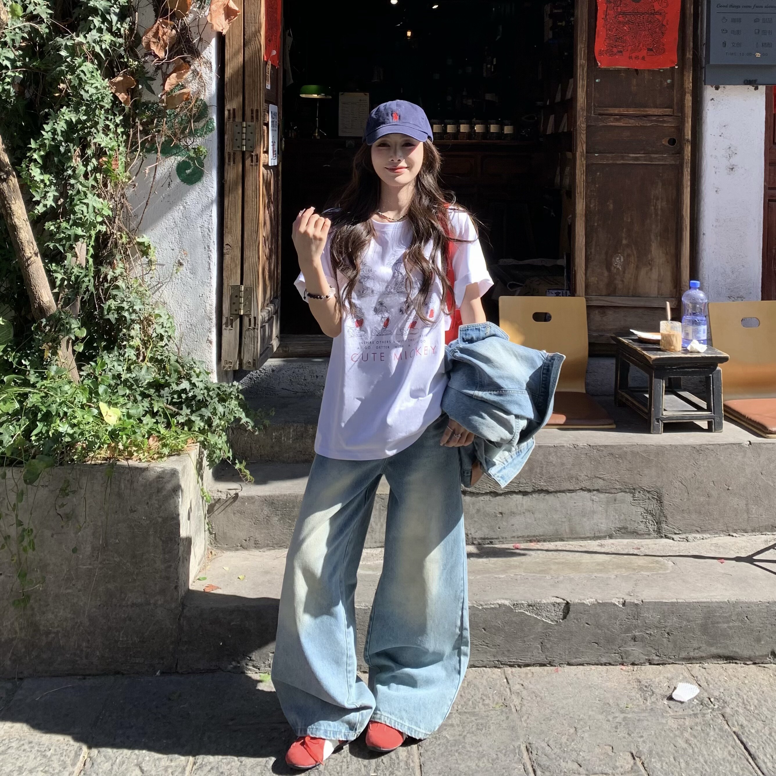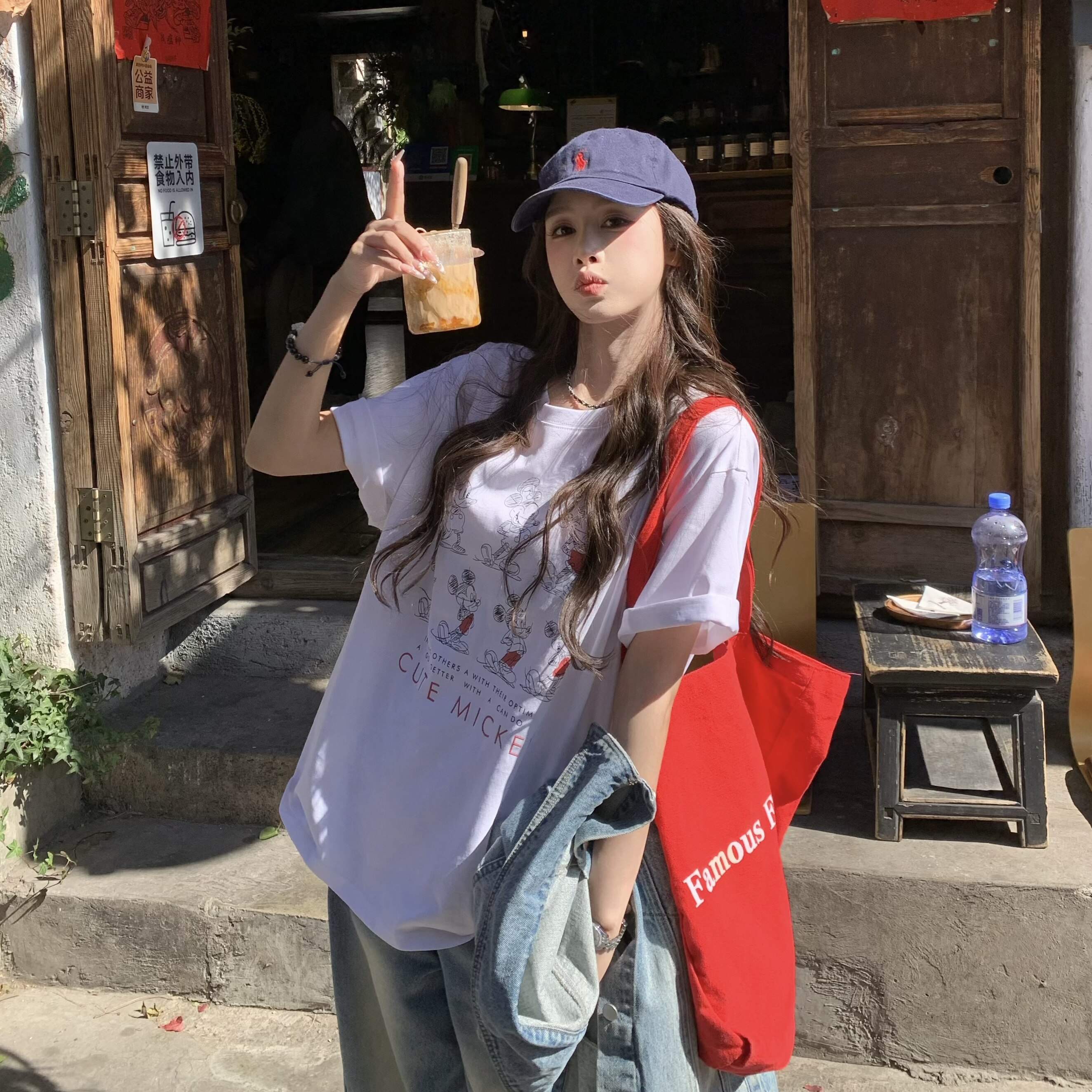 📚 3MER哦哦三妹 韩系米奇印花白色短袖T恤女春夏设计感圆领宽松上衣