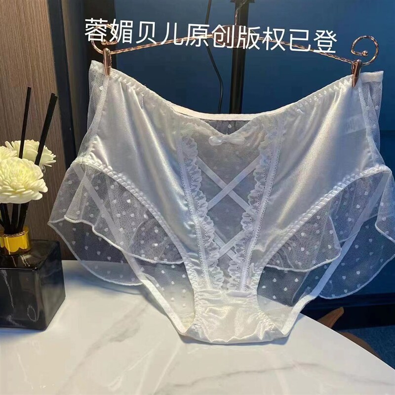 📚 想入非非~大码内裤女胖MM200斤透气蕾丝高腰网纱微棉裆少女三角裤