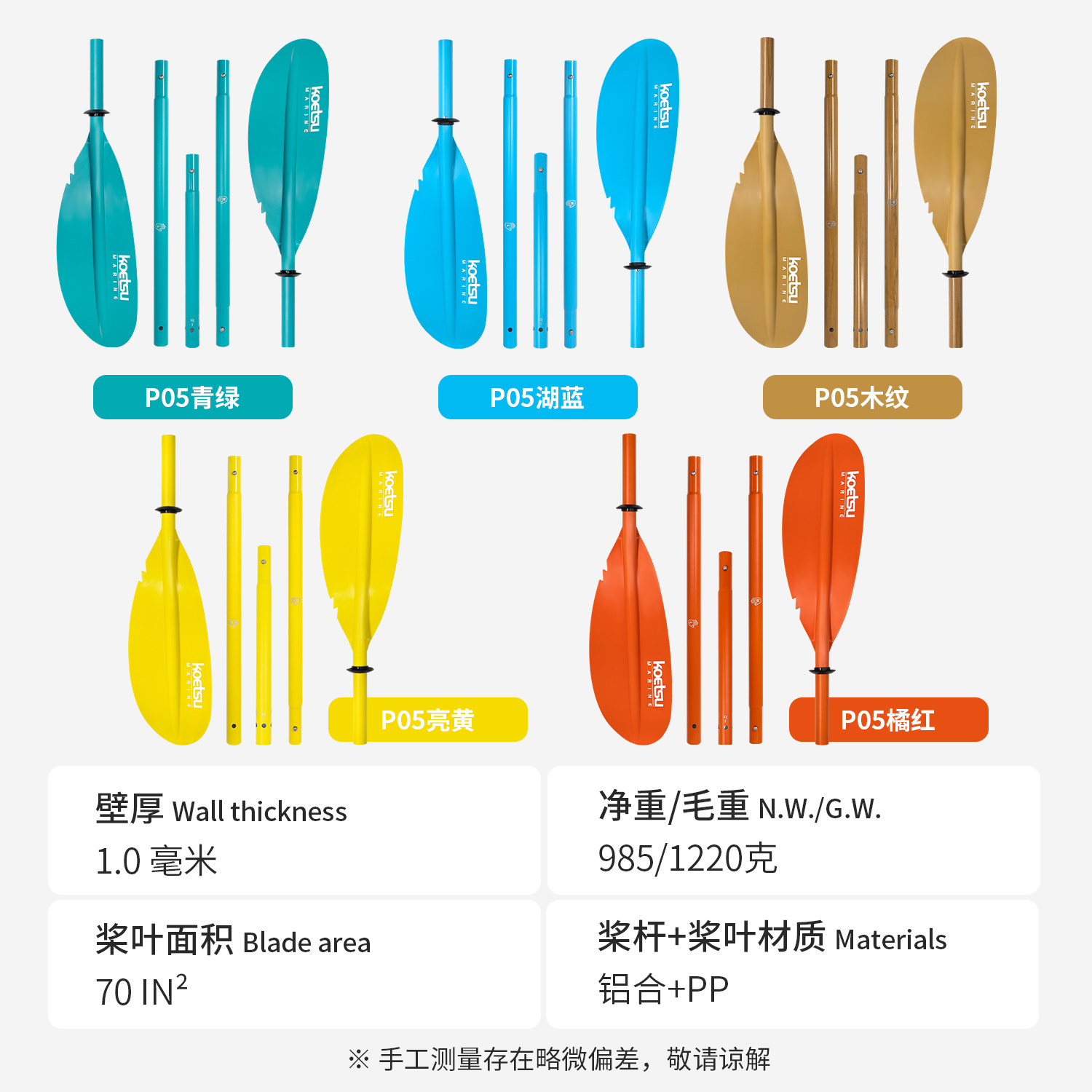 📚 KOETSU科特苏P05五节皮划艇桨便携可拆卸KAYAK双头桨海洋舟船划桨