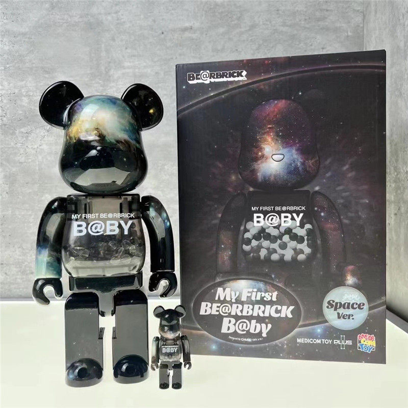 📚 bearbrick400%梵高公仔摆件 潮玩暴力熊摆件电镀积木熊手办玩偶