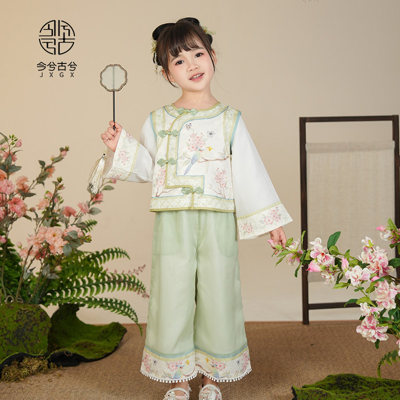 📚 汉服女童春装儿童中国风格格服宝宝古风两件套古装小女孩裤子套装