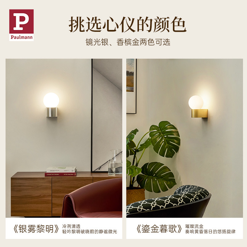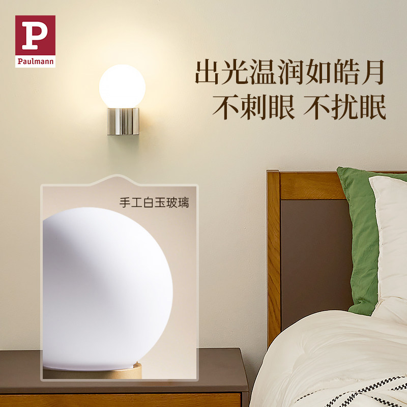 📚 【新品】德国柏曼床头全光谱圆球壁灯卧室走廊可调光艺术氛围灯具